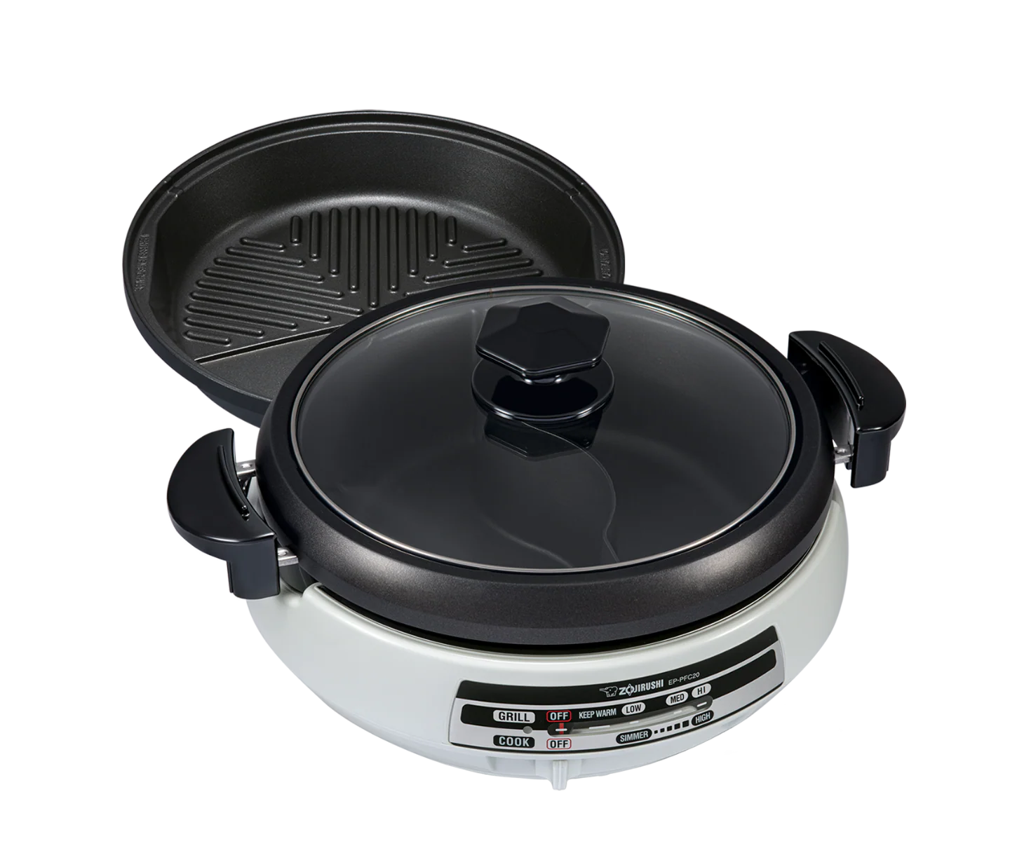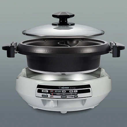 The Gourmet d'Expert® Electric Skillet is a multi-functional electric skillet with two cooking pans; a deep pan with a divider for Yin Yang hot pot, and a dual surface griddle pan for grilling meats and vegetables.